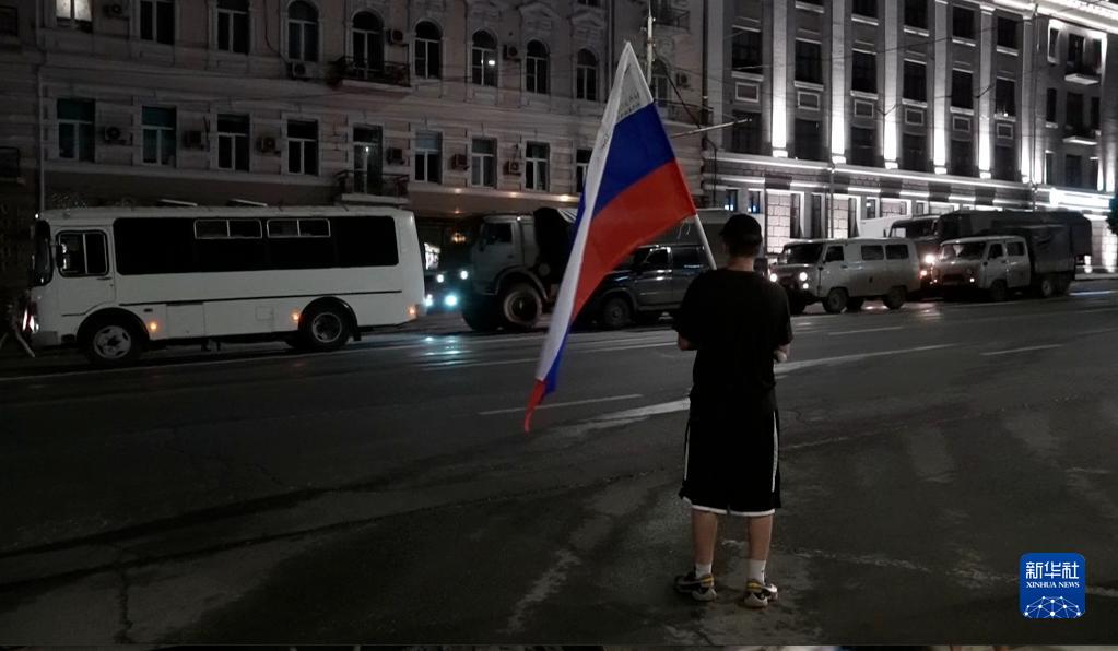 6月24日,在俄羅斯頓河畔羅斯托夫,軍用車(chē)輛編隊駛過(guò)(視頻截圖)。