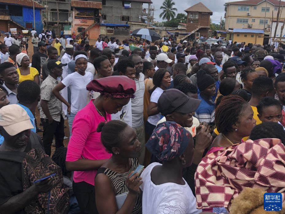 6月24日,在塞拉利昂首都弗里敦一處投票站,選民們排隊等待投票。
