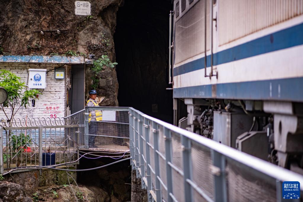 穿上工作服,拿著(zhù)手電筒,穿行在隧道和橋梁間,這是楊有光再熟悉不過(guò)的工作內容?;疖?chē)駛經(jīng)“人字橋”前后,須從兩個(gè)隧道穿過(guò)。為保障行車(chē)安全,楊有光不僅要檢查橋面狀況,還需要精準把握隧道內的情況。他要穿行在隧道內外,巡查大橋整體狀況,沿著(zhù)陡峭的階梯走到橋下,察看零部件狀況?;疖?chē)駛來(lái)時(shí),楊有光站在自己約3平米的值班室門(mén)口跨立候車(chē),目視火車(chē)駛過(guò)“人字橋”,并將通過(guò)時(shí)間記錄下來(lái)。
