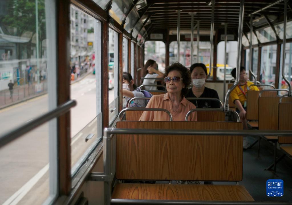 5月5日,香港市民乘坐“叮叮車(chē)”。