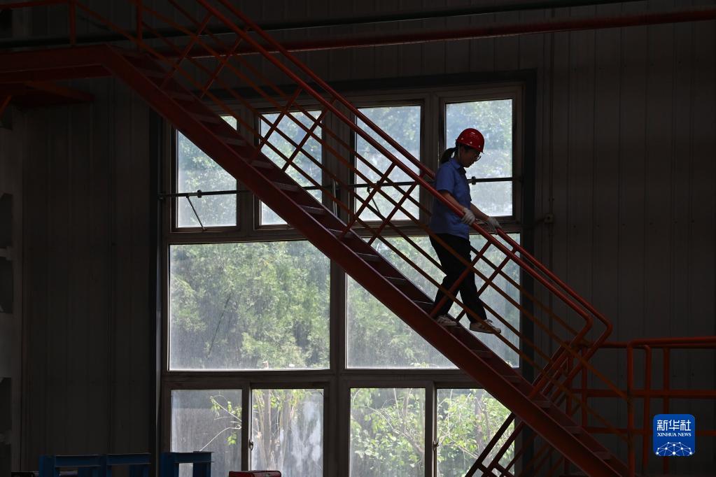 在中國鐵路太原局集團有限公司太原機務(wù)段太北檢修車(chē)間,天車(chē)司機王淑潔在工作結束后走下天車(chē)(6月15日攝)。