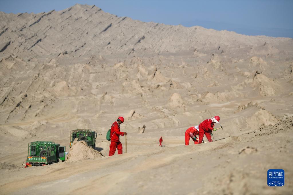 檢波器是采集地震波數據至關(guān)重要的終端。為保證數據采集的完整性、科學(xué)性,檢波器的點(diǎn)位經(jīng)過(guò)物探科研人員嚴密設計。施工中,物探放線(xiàn)工人嚴格按著(zhù)衛星定位軌跡,將檢波器運送到相應點(diǎn)位,并將其埋進(jìn)地下。