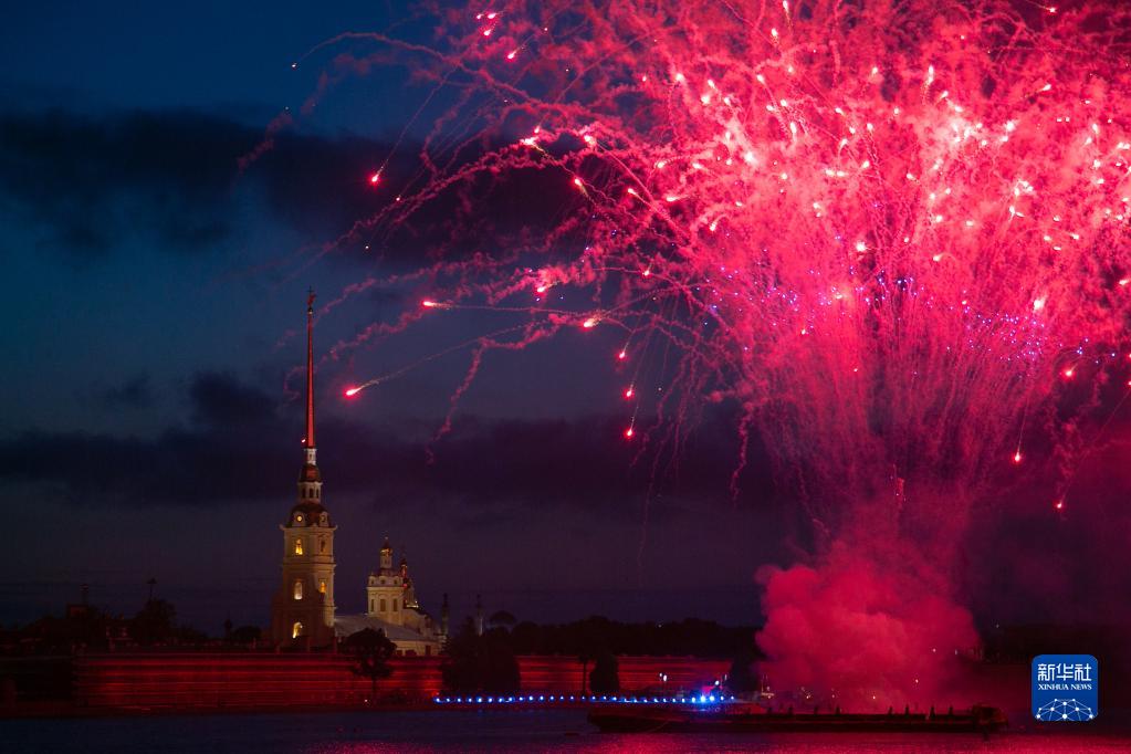 6月24日晚至次日凌晨,俄羅斯圣彼得堡迎來(lái)一年一度的“紅帆節”。節日期間,冬宮廣場(chǎng)上演大型音樂(lè )會(huì ),一艘“紅帆”在漫天煙花的映襯下駛過(guò)涅瓦河,慶祝中學(xué)生畢業(yè)、走向人生新起點(diǎn)。