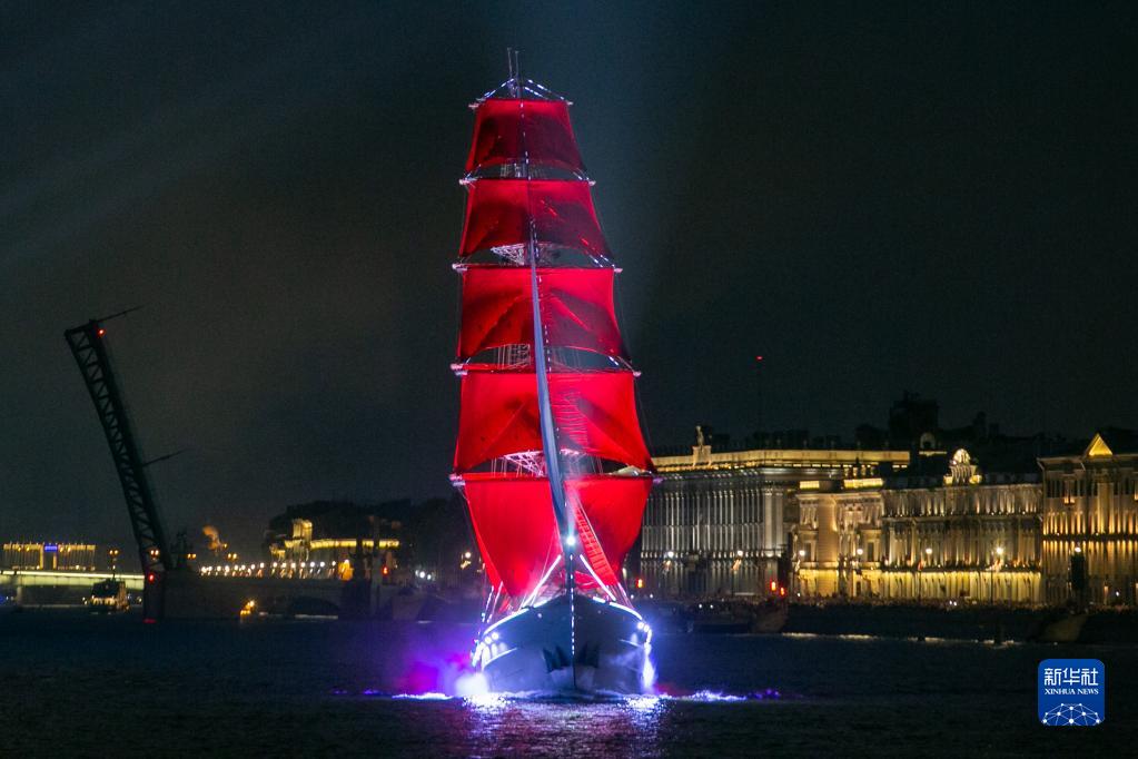 6月24日晚至次日凌晨,俄羅斯圣彼得堡迎來(lái)一年一度的“紅帆節”。節日期間,冬宮廣場(chǎng)上演大型音樂(lè )會(huì ),一艘“紅帆”在漫天煙花的映襯下駛過(guò)涅瓦河,慶祝中學(xué)生畢業(yè)、走向人生新起點(diǎn)。