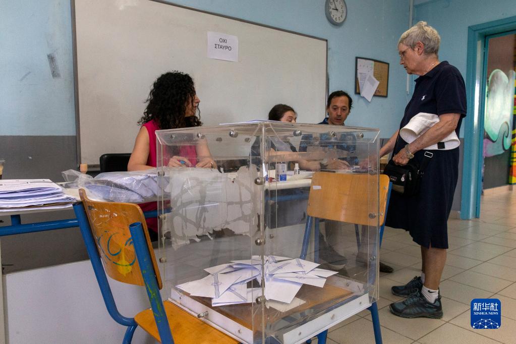6月25日,一名女子在希臘雅典一處投票站參加投票。