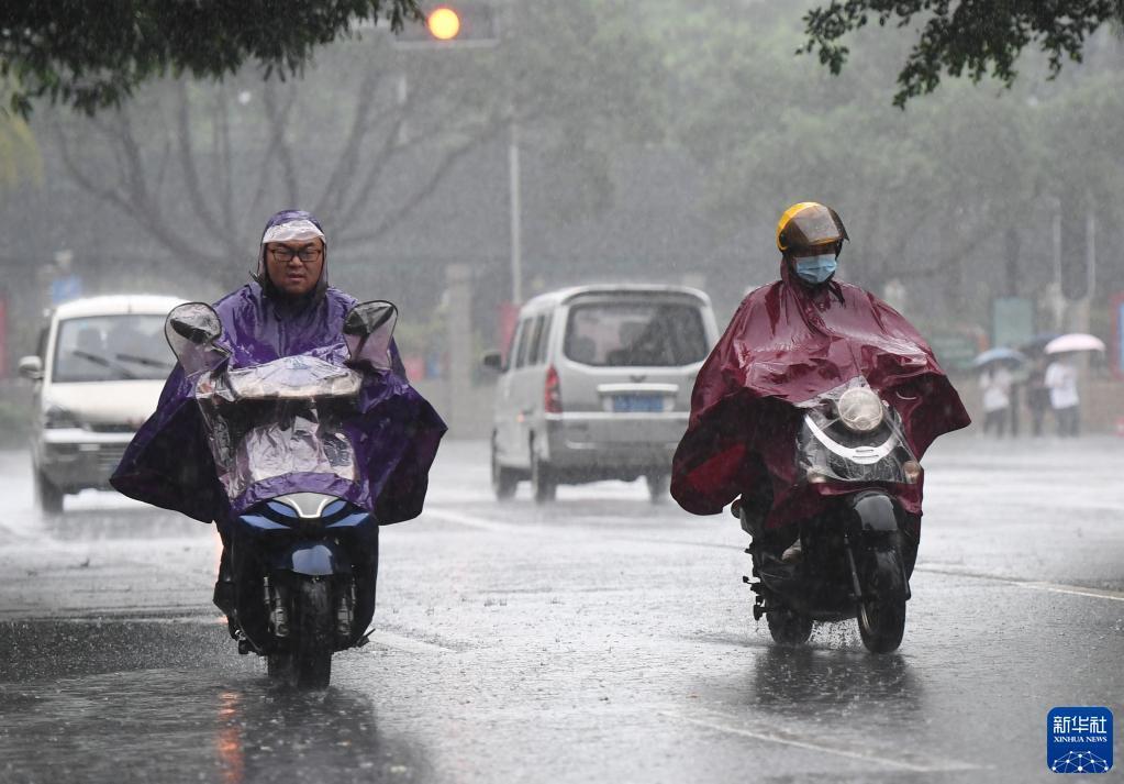 6月26日,在廣西南寧市濱湖路,市民冒雨出行。