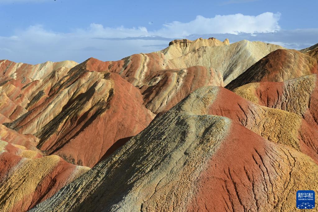 盛夏時(shí)節,甘肅省張掖市七彩丹霞景區在藍天白云的映襯下氣勢磅礴,色彩艷麗。