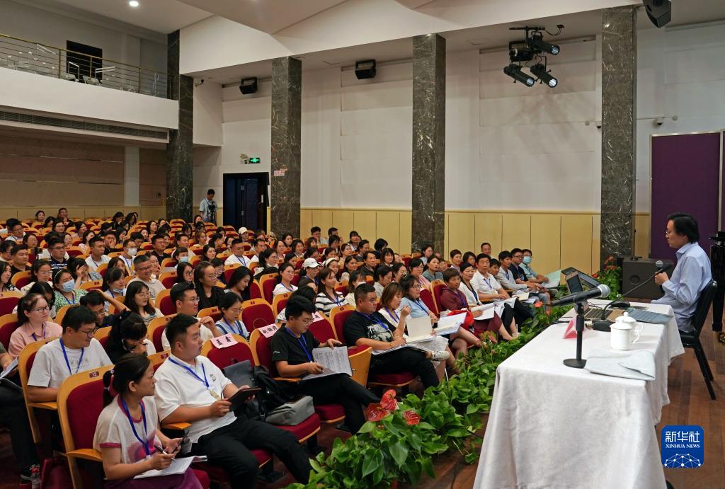 6月22日,上海師范大學(xué)音樂(lè )學(xué)院教師、泊樂(lè )合唱團藝術(shù)總監王超在為鄉村教師們授課。