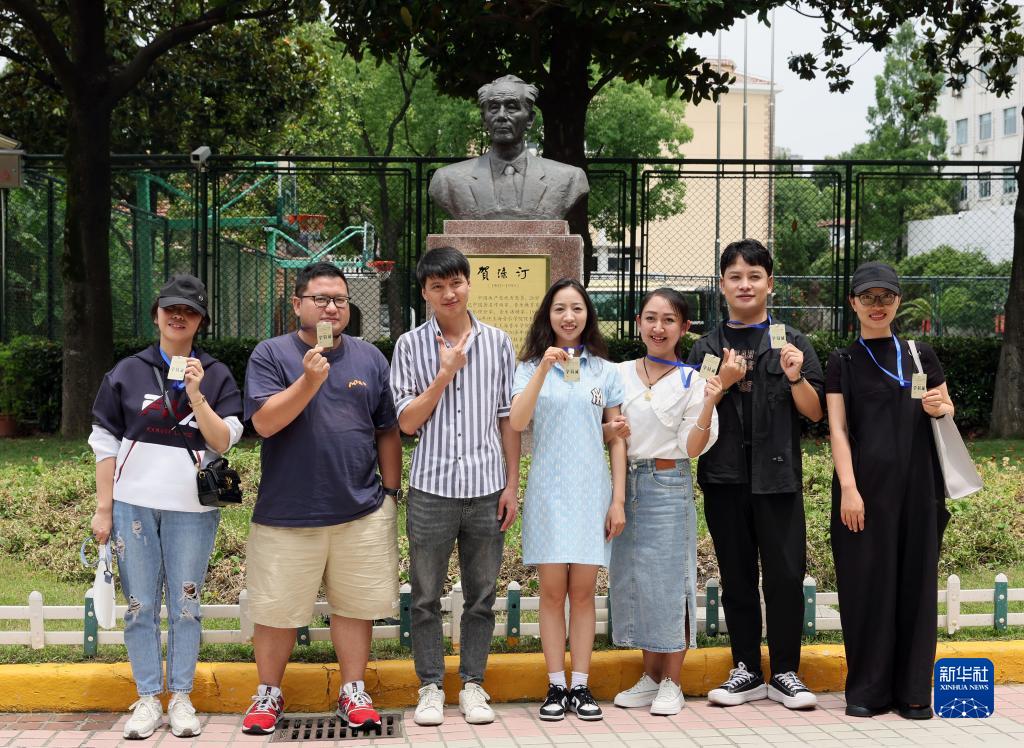 6月23日,在上音附中的賀淥汀像前,來(lái)自云南的鄉村音樂(lè )教師們合影留念。