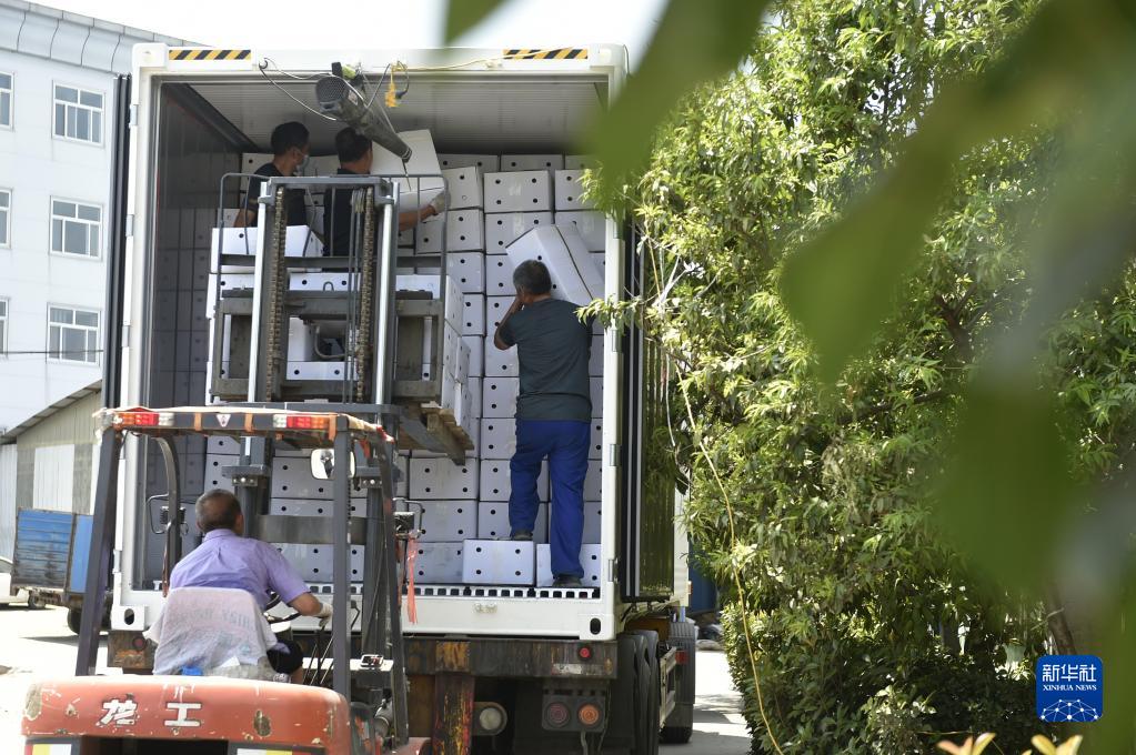 6月26日,工人在河南省安陽(yáng)市內黃縣興隆農產(chǎn)品有限公司將辣椒制品裝車(chē)準備外銷(xiāo)。