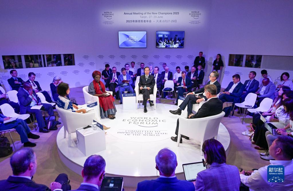 6月27日,與會(huì )者在第十四屆夏季達沃斯論壇上參加“通力合作,促進(jìn)能源轉型”對話(huà)會(huì )。