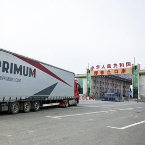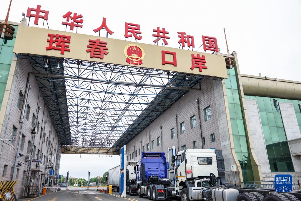 6月26日,貨車(chē)在琿春公路口岸排隊等待通關(guān)。