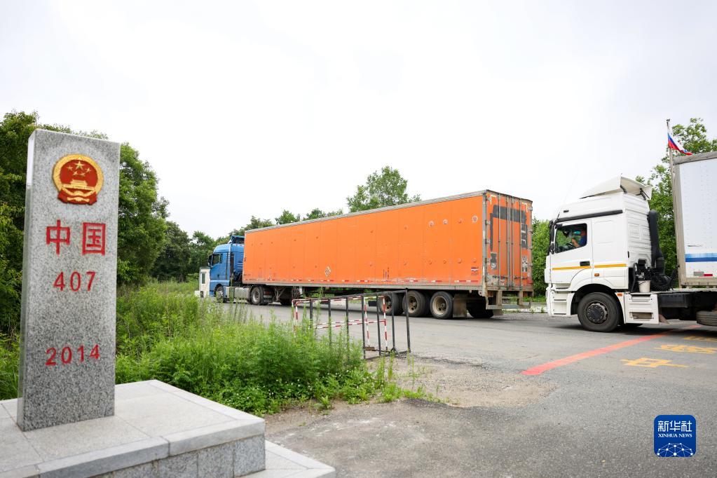 6月26日,貨車(chē)在琿春公路口岸駛離中俄邊境。