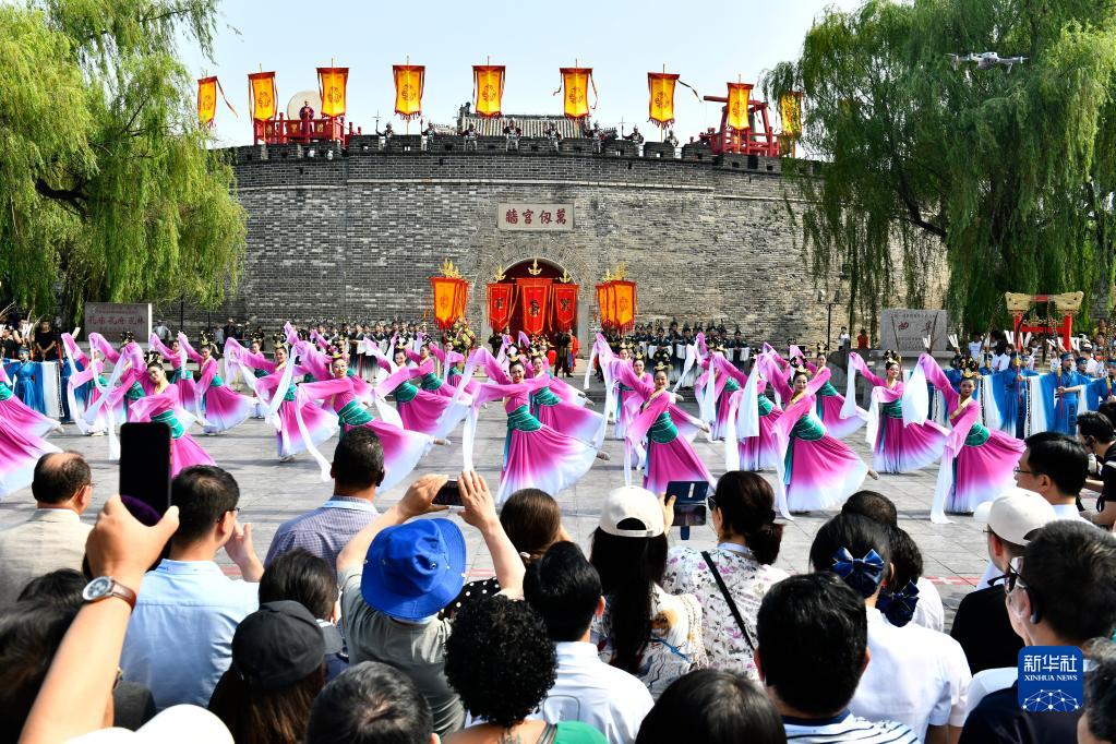 6月27日,在曲阜孔廟,工作人員在開(kāi)城儀式上表演。