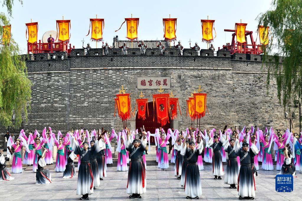 6月27日,在曲阜孔廟,工作人員在開(kāi)城儀式上表演。
