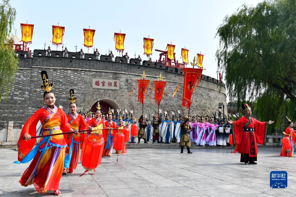 6月27日,在曲阜孔廟,工作人員在開(kāi)城儀式上表演。