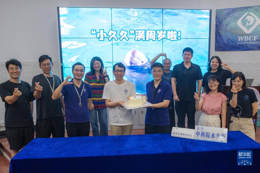 當日是中國科學(xué)院水生生物研究所白鱀豚館人工飼養的小江豚(編號為F9C22)周歲生日,武漢市農業(yè)農村局、中科院水生所和武漢白鱀豚保護基金會(huì )在白鱀豚館為小江豚慶生。
