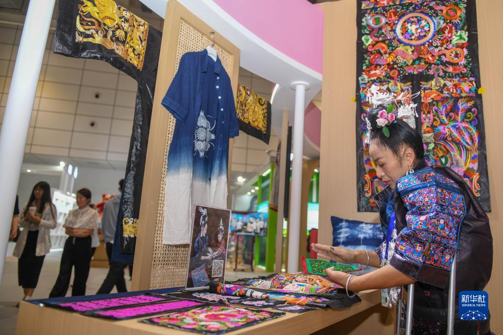 6月27日,在第四屆全國殘疾人展能節上,來(lái)自貴州的張艷梅展示自己制作的苗繡產(chǎn)品。