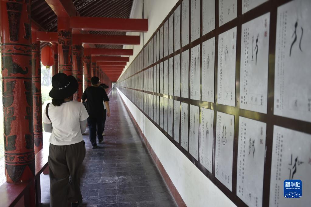 6月26日,游人在河南省安陽(yáng)市殷墟遺址甲骨碑廊游覽。