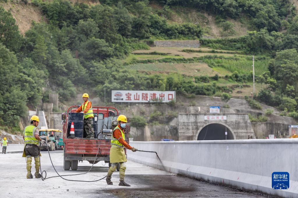 6月27日,在巫鎮高速公路二標段施工現場(chǎng),施工人員在進(jìn)行橋面防水施工。