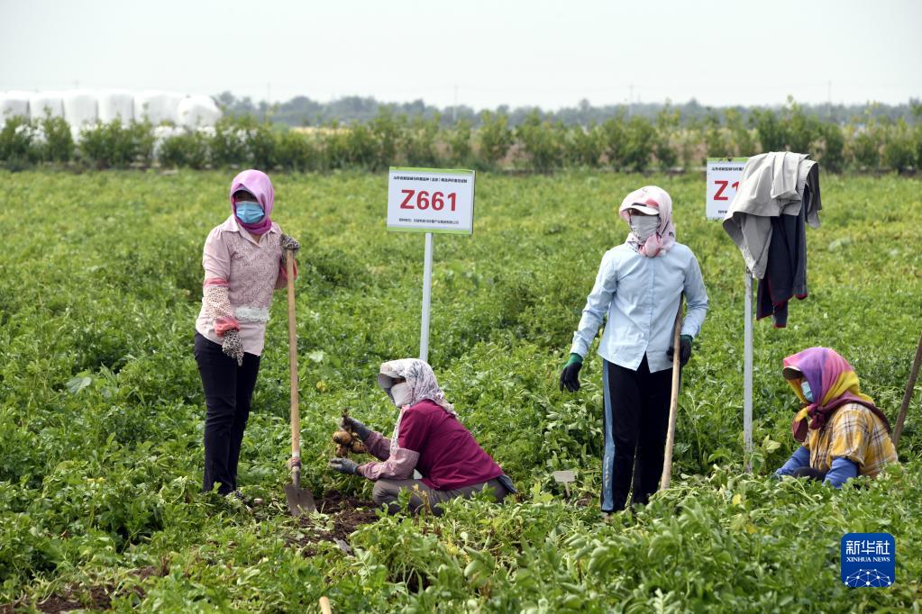 6月27日,工作人員在示范基地收獲馬鈴薯。