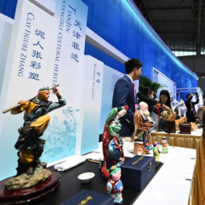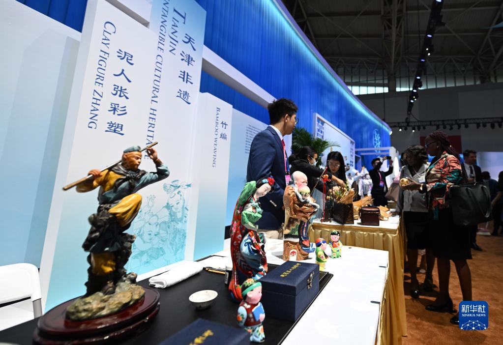 6月27日,與會(huì )嘉賓在第十四屆夏季達沃斯論壇文化之夜現場(chǎng)了解天津非遺項目。