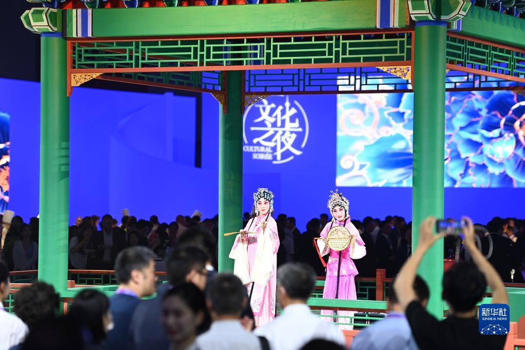當晚,第十四屆夏季達沃斯論壇文化之夜在天津梅江會(huì )展中心舉行。與會(huì )嘉賓伴隨著(zhù)文藝演出,品嘗天津特色美食,體驗中國傳統文化。新華社記者 趙子碩 攝