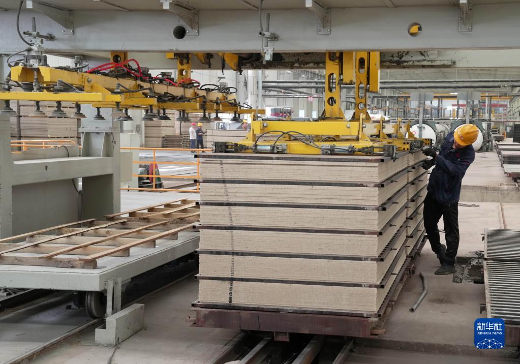 6月27日,工人在河北省灤南縣一家新型建筑材料企業(yè)生產(chǎn)車(chē)間工作。