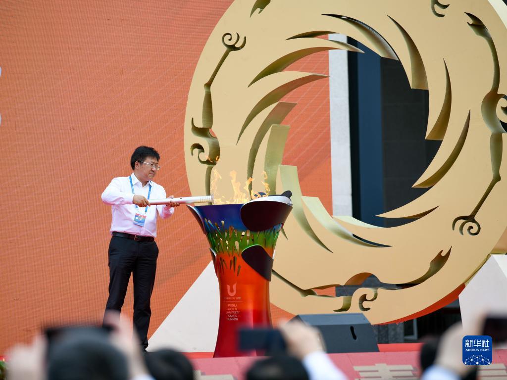 6月28日,亞洲大學(xué)生體育聯(lián)合會(huì )主席、教育部學(xué)生體育協(xié)會(huì )聯(lián)合秘書(shū)處秘書(shū)長(cháng)、中國大學(xué)生體育協(xié)會(huì )副主席劉立新在儀式上點(diǎn)燃火種盆。