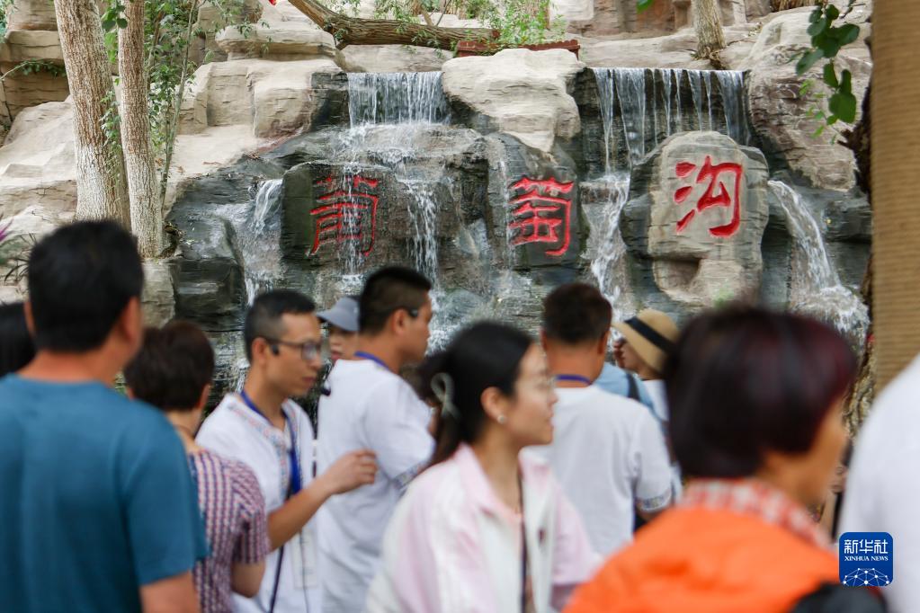 游客在位于吐魯番市的葡萄溝景區參觀(guān)(6月26日攝)。