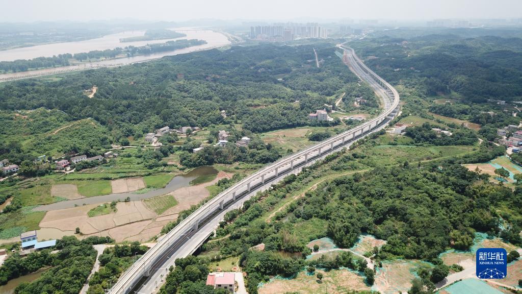 這是6月28日拍攝的長(cháng)株潭城際軌道交通西環(huán)線(xiàn)一期工程的高架軌道(無(wú)人機照片)。