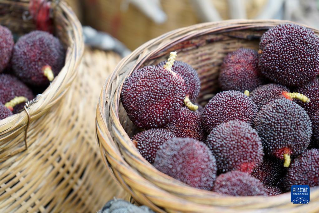 這是湖南省靖州苗族侗族自治縣渠陽(yáng)鎮官團村果農剛采摘的楊梅(6月18日攝)。