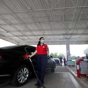 6月28日,河北省邢臺市任澤區一家加油站的工作人員在給汽車(chē)加油。