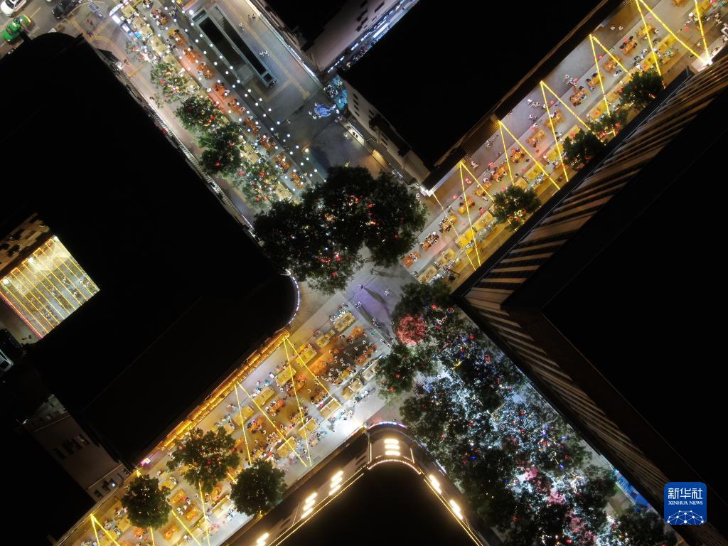 6月28日拍攝的延安市延州二道街夜市(無(wú)人機照片)。