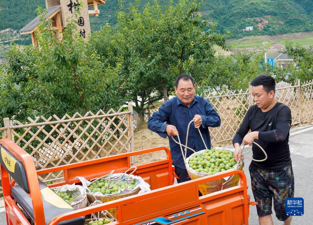 6月28日,重慶巫山縣曲尺鄉柑園村,當地果農在將新采摘的巫山脆李裝入三輪車(chē)。