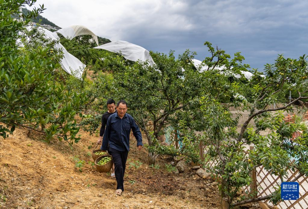 6月28日,在重慶市巫山縣曲尺鄉柑園村,果農在搬運采摘的巫山脆李。
