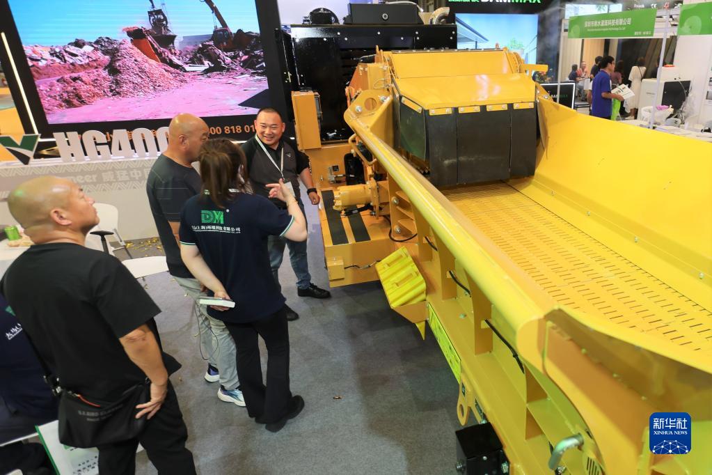 6月29日,參觀(guān)者了解臥式粉碎機新品。