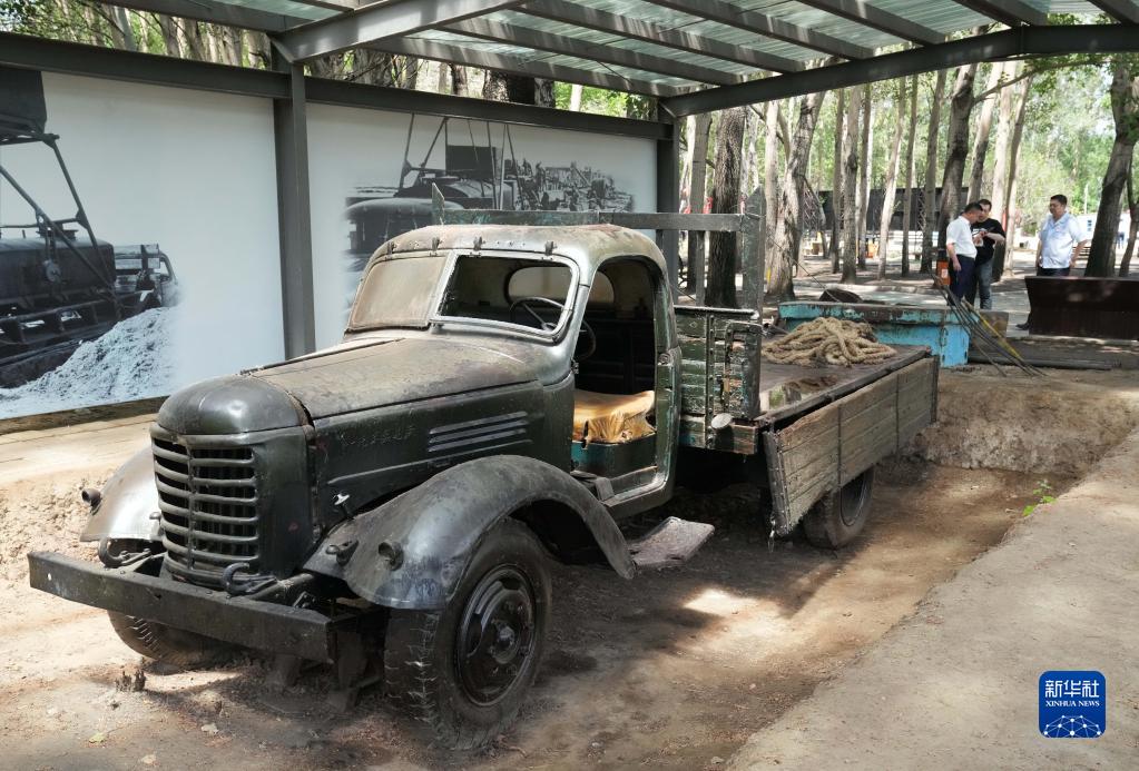 6月28日,參觀(guān)者在大慶油田鐵人一口井教育培訓基地觀(guān)看卸車(chē)臺。