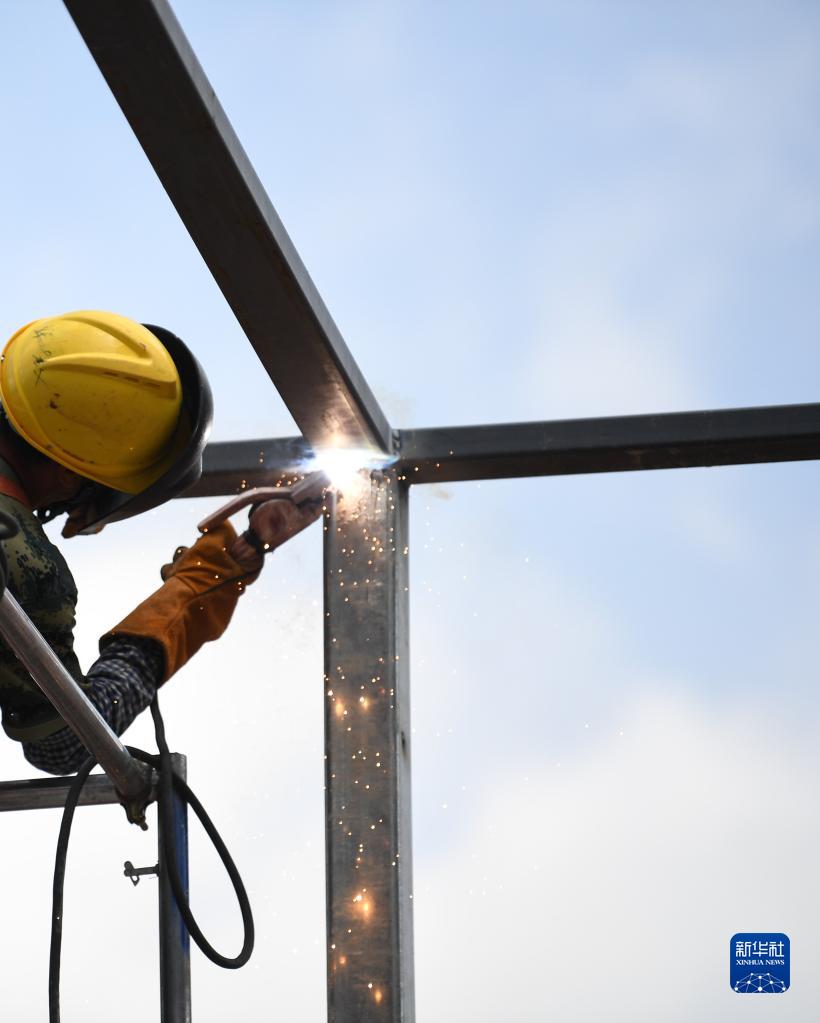 6月29日,在中建三局承建的西安電子科技大學(xué)廣州研究院項目工地,工人進(jìn)行焊接作業(yè)。