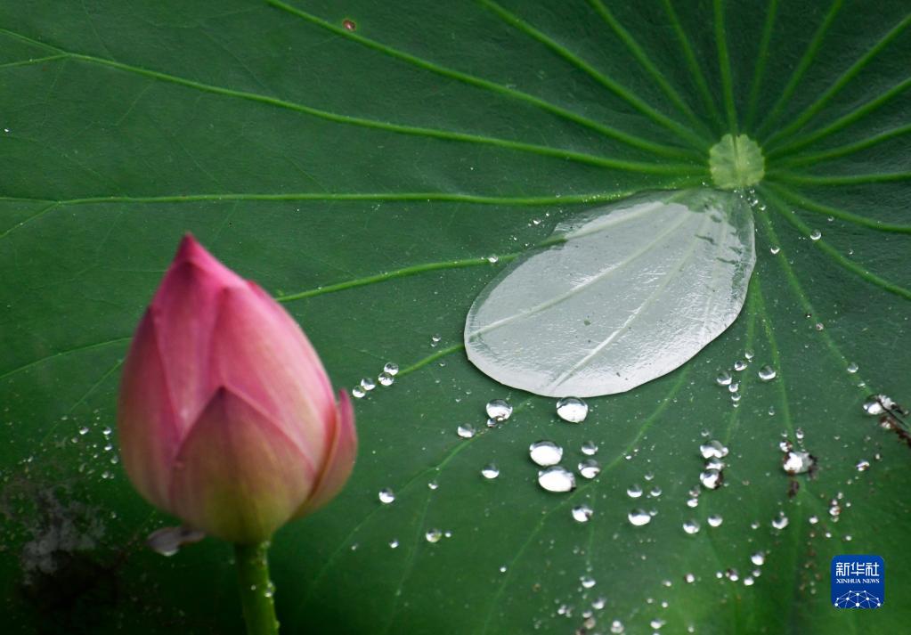 6月25日在山東省棗莊市山亭區月亮灣國家濕地公園拍攝的雨中的荷花。