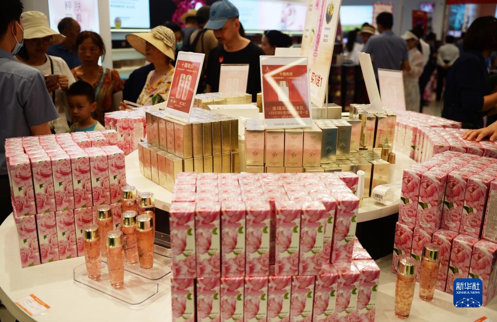 6月29日,游客在位于博后村的亞龍灣國際玫瑰谷選購玫瑰美妝產(chǎn)品。
