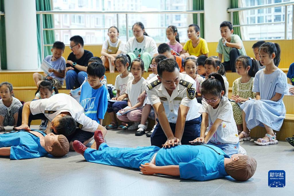 6月29日,在重慶市北碚區青少年活動(dòng)中心,北碚區交通局港航管理處工作人員在給孩子們講解心肺復蘇知識。