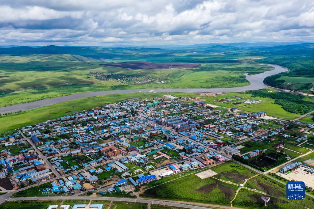 6月29日拍攝的蒙兀室韋蘇木風(fēng)光(無(wú)人機照片)。