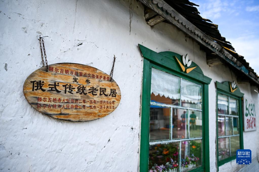 6月28日,考占花家的俄式傳統民居??颊蓟ㄊ嵌砹_斯族,2004年開(kāi)始經(jīng)營(yíng)俄羅斯族家庭游。