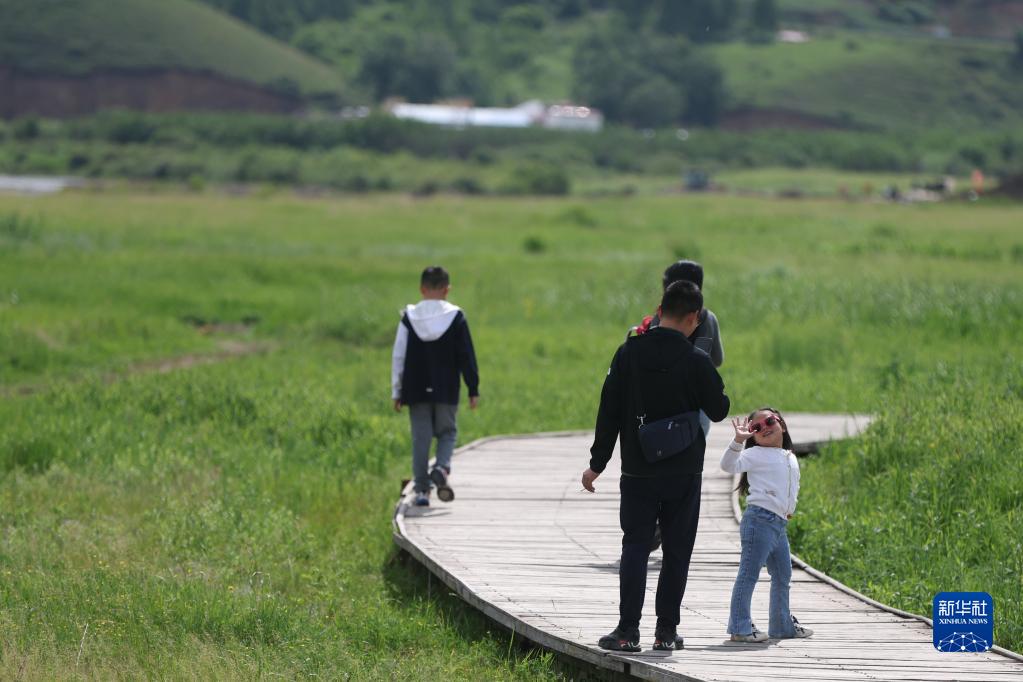 6月29日,游客在蒙兀室韋蘇木一處游船碼頭游覽。