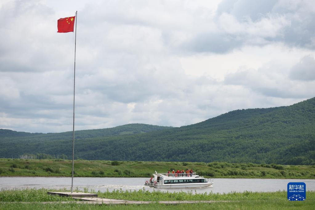 6月29日,游客在蒙兀室韋蘇木境內的額爾古納河上乘船游覽。