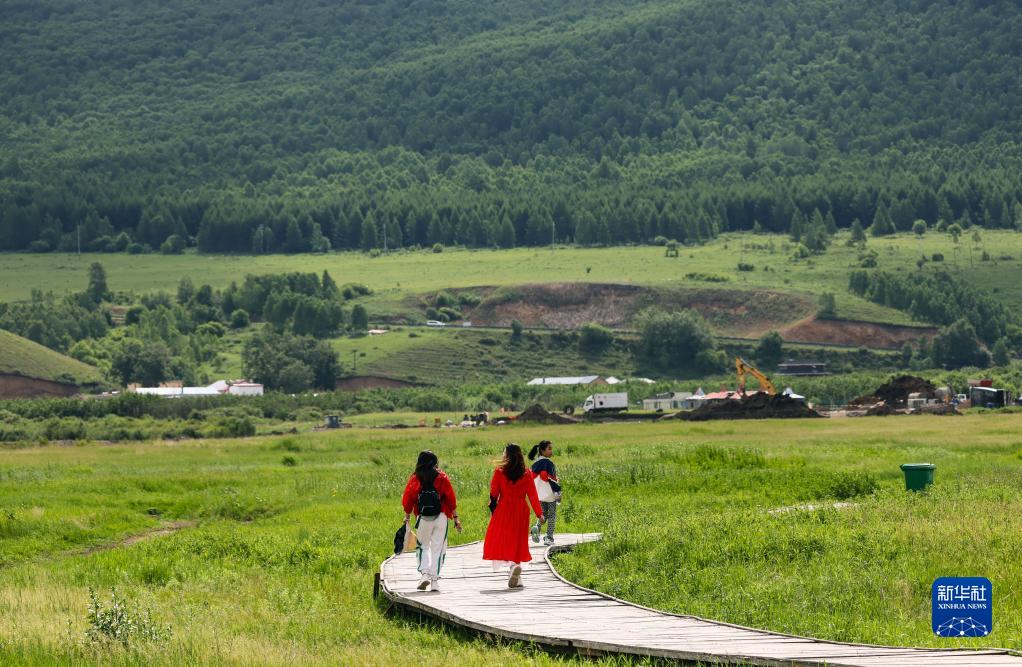 6月29日,游客在蒙兀室韋蘇木一處游船碼頭附近游覽。