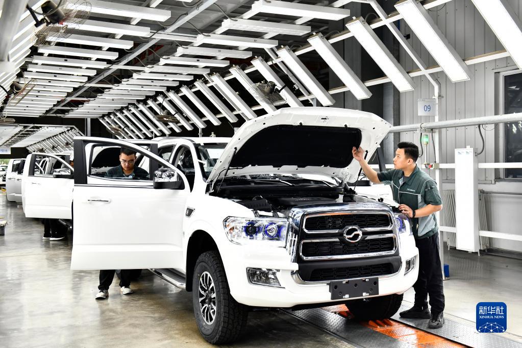 6月29日,工作人員在山東省日照高新技術(shù)產(chǎn)業(yè)開(kāi)發(fā)區日照中興汽車(chē)有限公司裝配整車(chē)。