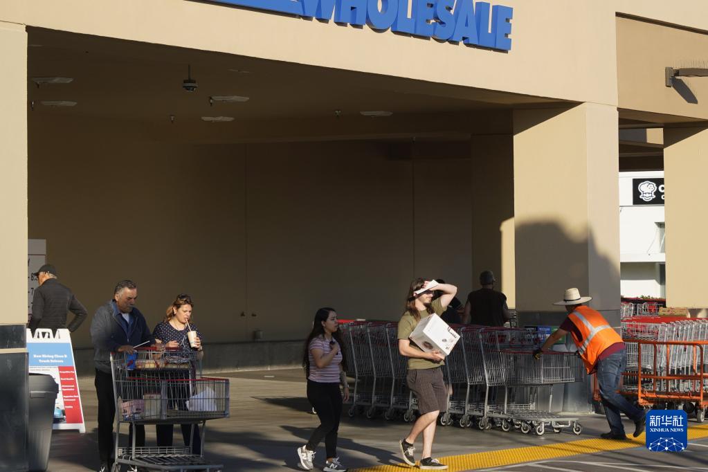 6月29日,在美國舊金山灣區福斯特城,顧客走出一家超市。