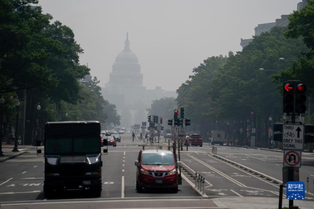 6月29日,在美國首都華盛頓,國會(huì )大廈籠罩在煙霧中。